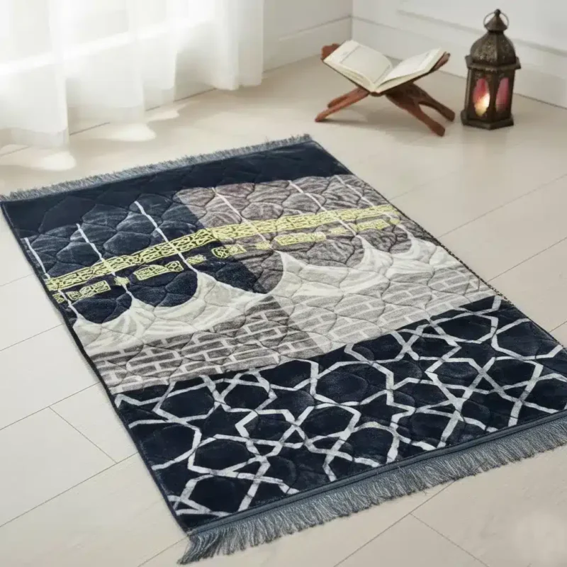 - Luxurious Texture: Experience ultimate comfort with our Premium Prayer Mat – Janamaz ( خانہ کعبہ ). Designed with a luxurious texture, the plush surface offers a cocoon of peacefulness. This softness not only provides physical comfort but also enhances the spiritual ambiance, allowing you to focus more deeply on your prayers.